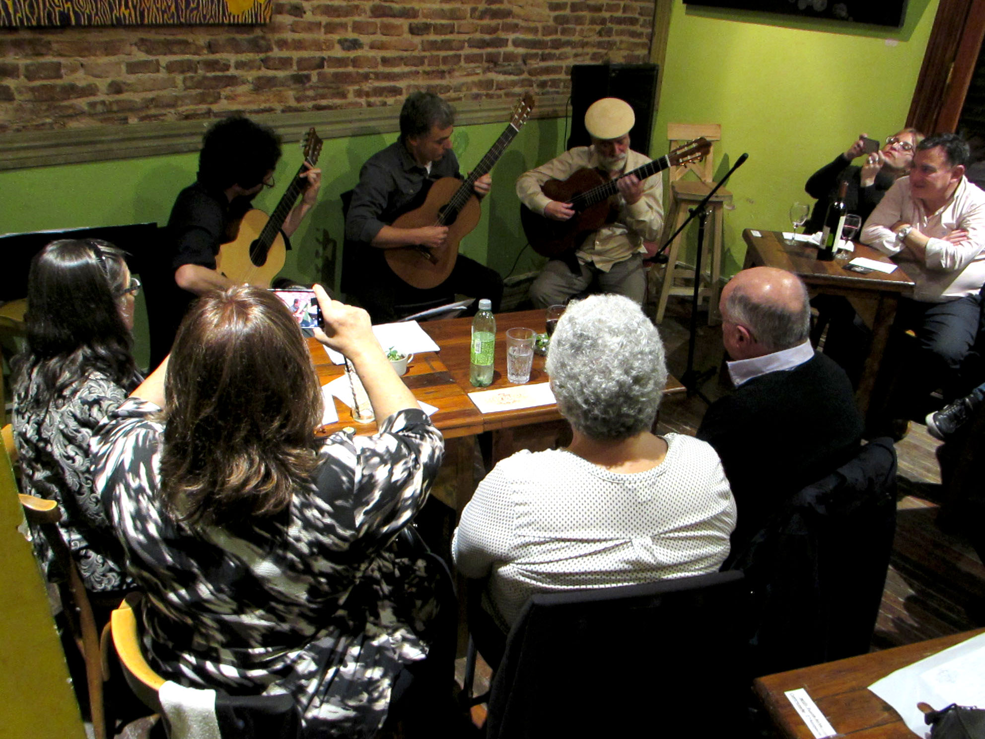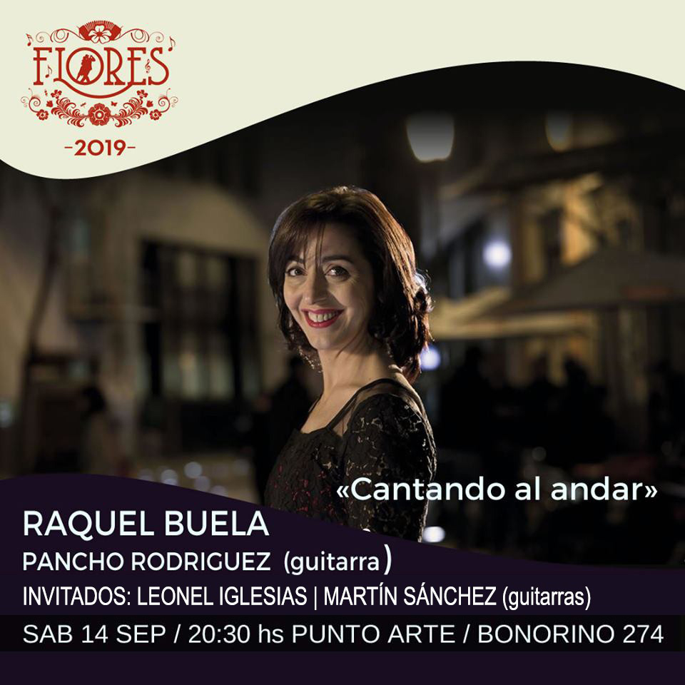 Raquel Buela (voz) y Pancho Rodríguez (guitarra) presentaron el show “Cantando al andar” en el 4° Festival de Tango de Flores, el sábado 14 de septiembre de 2019 en Punto Arte (Bonorino 274, CABA). Compartieron un set de música ciudadana (“La voz de Buenos Aires”, “Patio mío“, “Mesas de los bares”, “La luz de un fósforo”, “Milonguera”, “De Buenos Aires morena”, “Aquel caballito de madera”, “Nido gaucho” y “Mi vieja viola”), y contaron con la presencia de los músicos invitados, Leonel Iglesias y Martín Sánchez, quienes tocaron tres piezas instrumentales con Pancho Rodríguez, y luego se sumó Raquel para interpretar “Pedacito de cielo” y “Melodía de arrabal” con el trío de guitarras. Entre el público de la noche estuvieron: la escritora Victoria Bayona; los cantantes Alberto Raúl y Raúl Merbilhaá; y las artistas plásticas Teresa Manzor y Graciela Calcagno. Felicitamos a Viviana Scarlassa, Hernán Ielapi y Christian Martínez por la organización del festival y les agradecemos por incluirnos en esta fiesta barrial que celebra la música popular y su poesía.